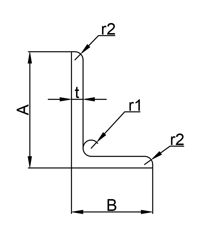 A x B | t1 | r1 | r2 | ㎠ | kg/m | Zx(㎠) | Zy(㎠) |
